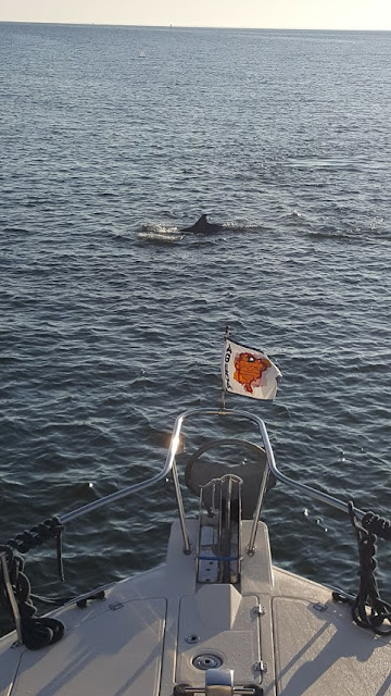 Dolphins were everywhere. I got several videos but they were too large to email or post on Facebook. Many times the dolphins were jumping, slapping their tails on the water, and swimming along the side of our boat in our wake.