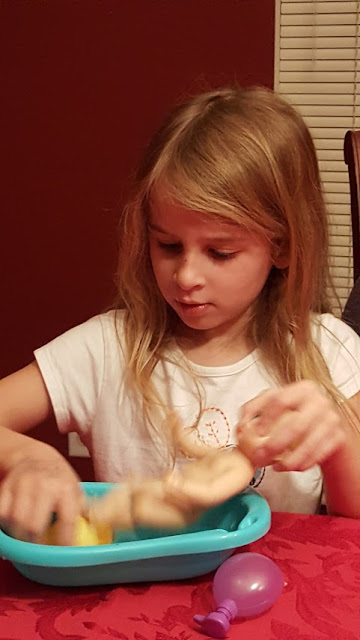 Abigail blew our the candles on her cake and was bathing her new baby doll in no time.